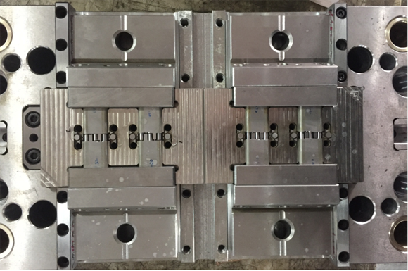 模具簡述: 模具共3個工件使用增材制造技術成型:上內模、下內模、尖點熱唧嘴套 材質:1.2709 硬度:上內模、熱唧嘴套 HRC52,下內模 HRC50 型芯表面:火花紋效果